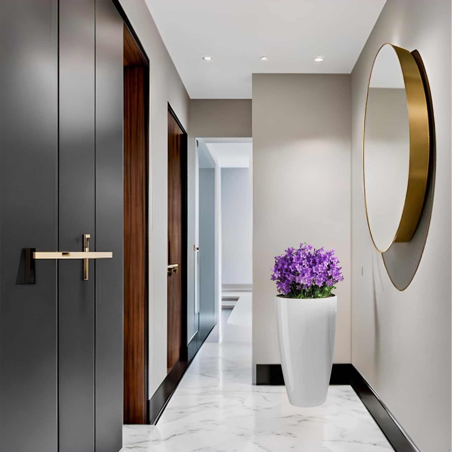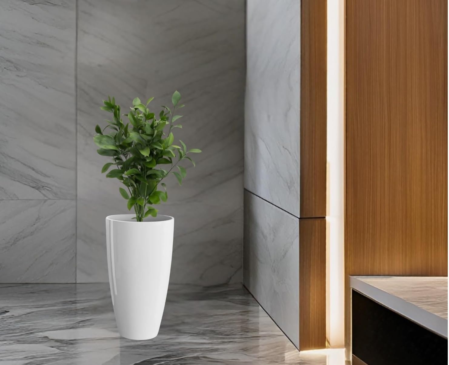 Wildshopperz Fiber Tower Pot 14 inch Flower Pots for Home Office Garden Balcony Plant Container Set (White) Pack 2 (Tower Pot 14 INCHES)